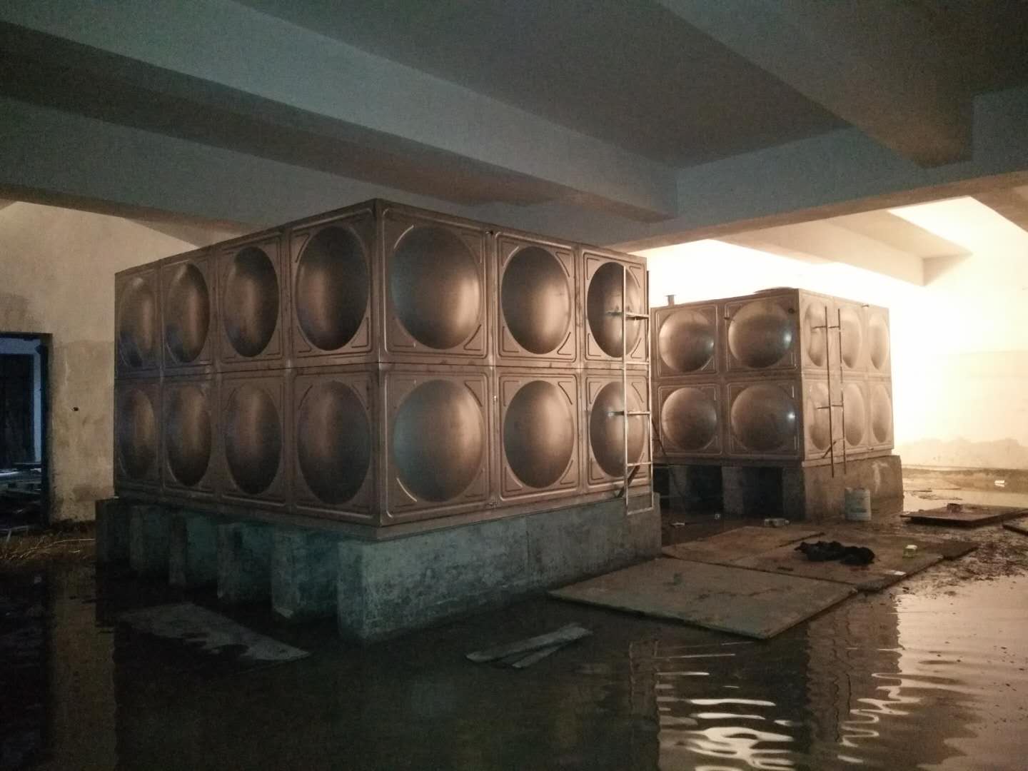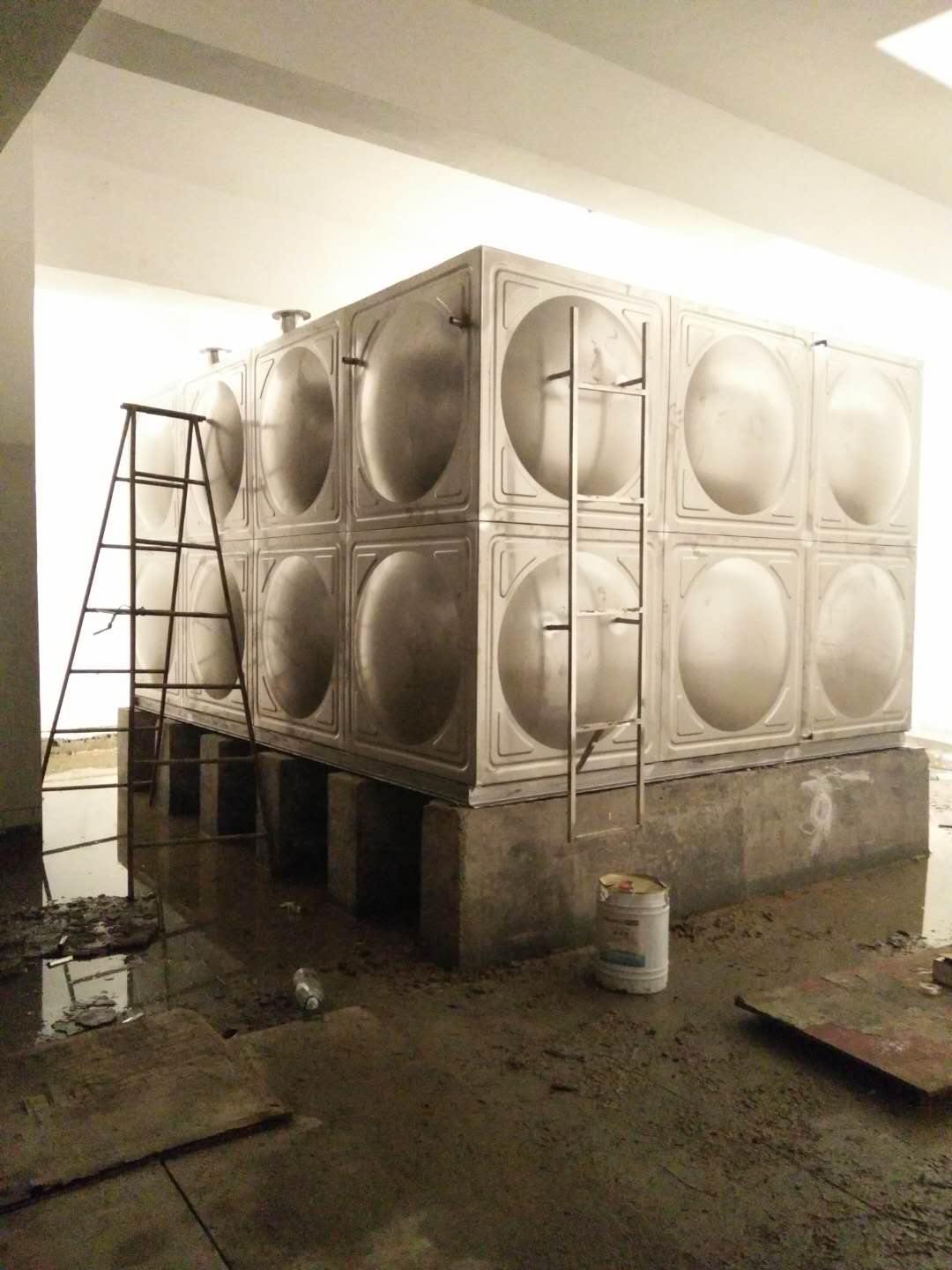 我司安装工人连续奋战6个日夜,与2018年7月13日晚顺利两个30吨生活水箱全部安装工程,并试水成功!